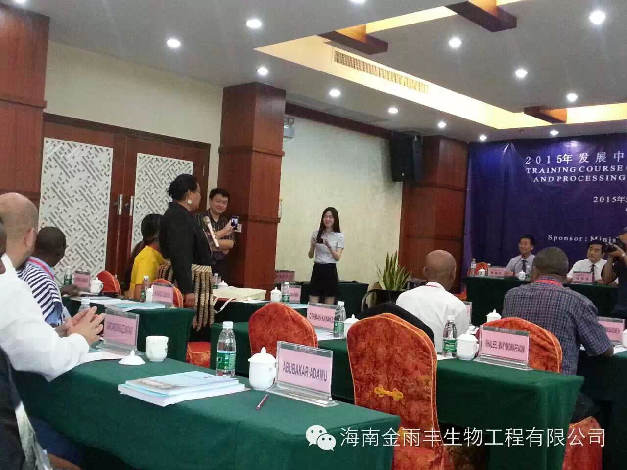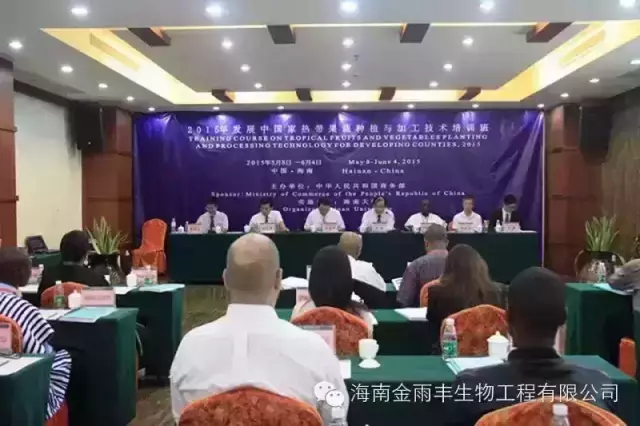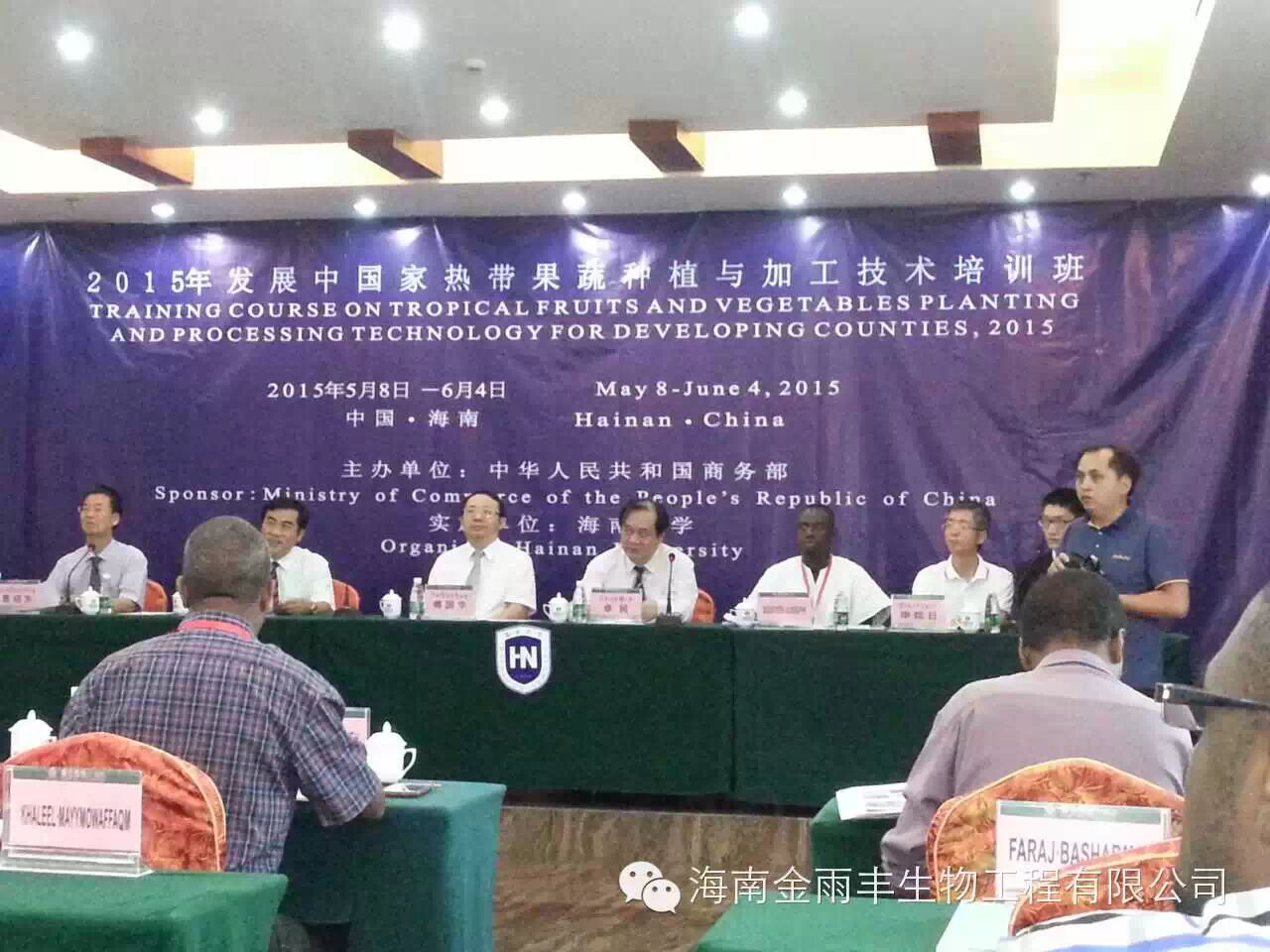 2015年5月8日,由商务部主办、海南大学国际合作交流处承办、海南金雨丰生物工程有限公司协办的“发展中国家热带果蔬种植与加工技术考察团”启动仪式在海口市隆重举行。我司肖玲女士受邀于海南大学国际合作交流中心的邀请参加此次座谈会。